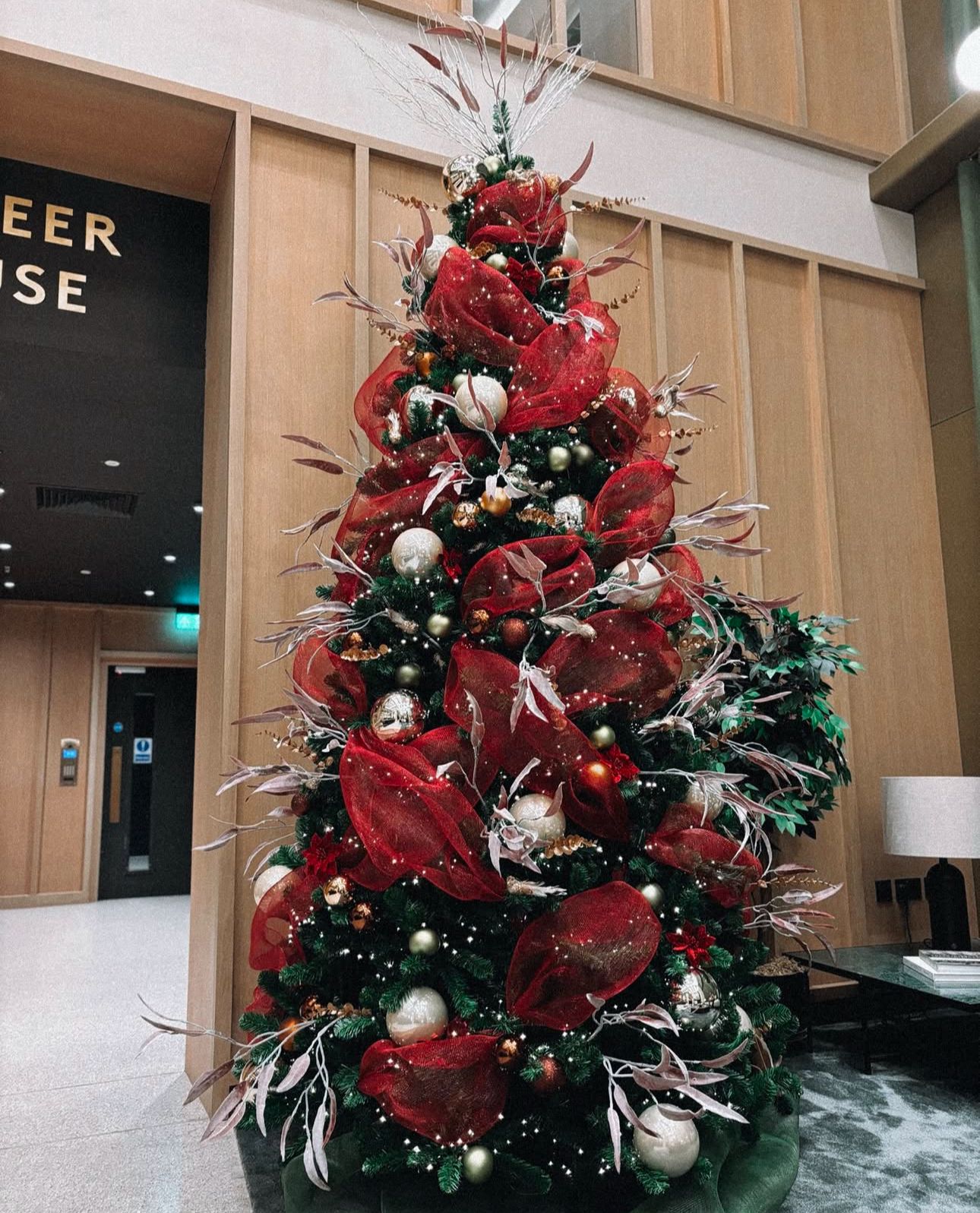 We loved dressing the stunning New Acres development in Wandsworth. A 10 foot Christmas tree in traditional colours with a modern twist, Christmas floral display and Christmas stair garland. Christmas brought to you by The Luxe Occasion, luxury event styling and decoration services covering London and Surrey.